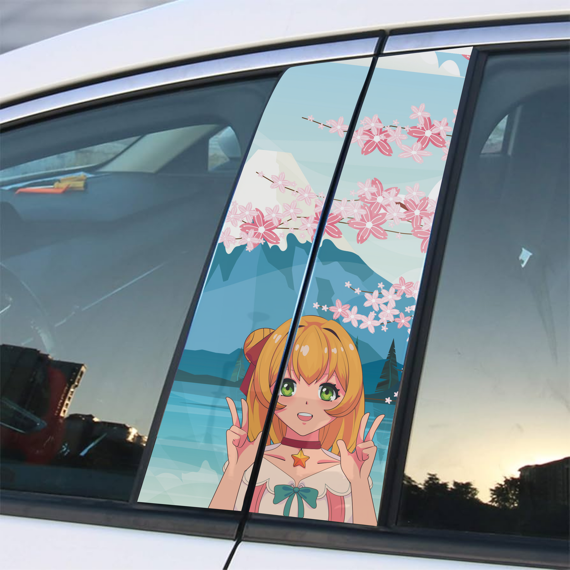 Autocollant de montant B de portière de voiture avec une fille animée sur fond Sacura – Impression professionnelle