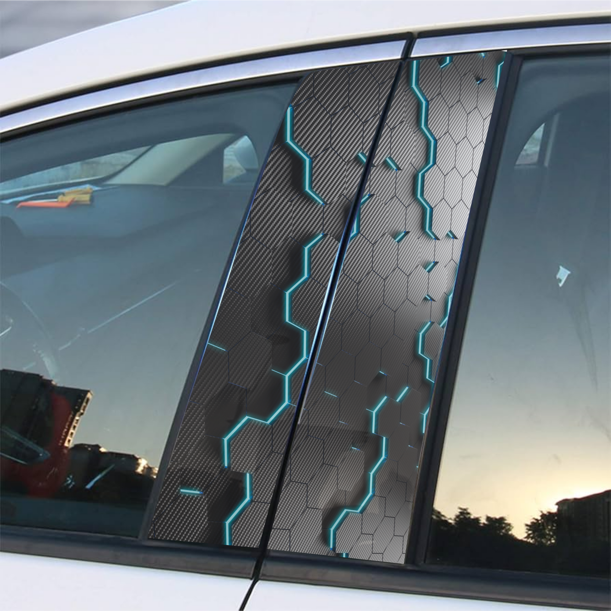 Autocollant Cyber Carbon pour montant central de portière de voiture - Impression professionnelle