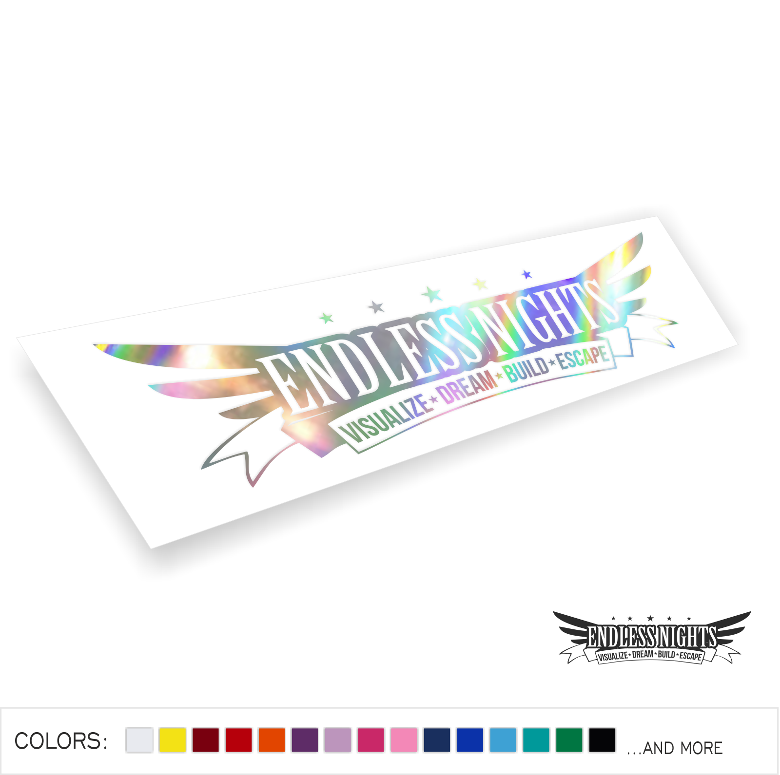 Autocollant « Nuits sans fin » avec ailes. Cet autocollant fait partie de notre nouvelle série « Ailes ». Les ailes sont le symbole du voyageur et du messager , des rêves , de l'impulsion et du mouvement . Les Grecs représentaient l'amour et la victoire avec des ailes. Selon Platon, les ailes symbolisent l'intelligence et la compréhension.