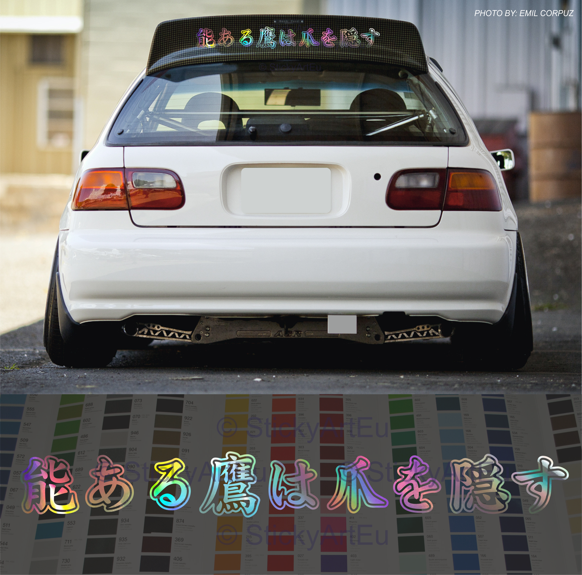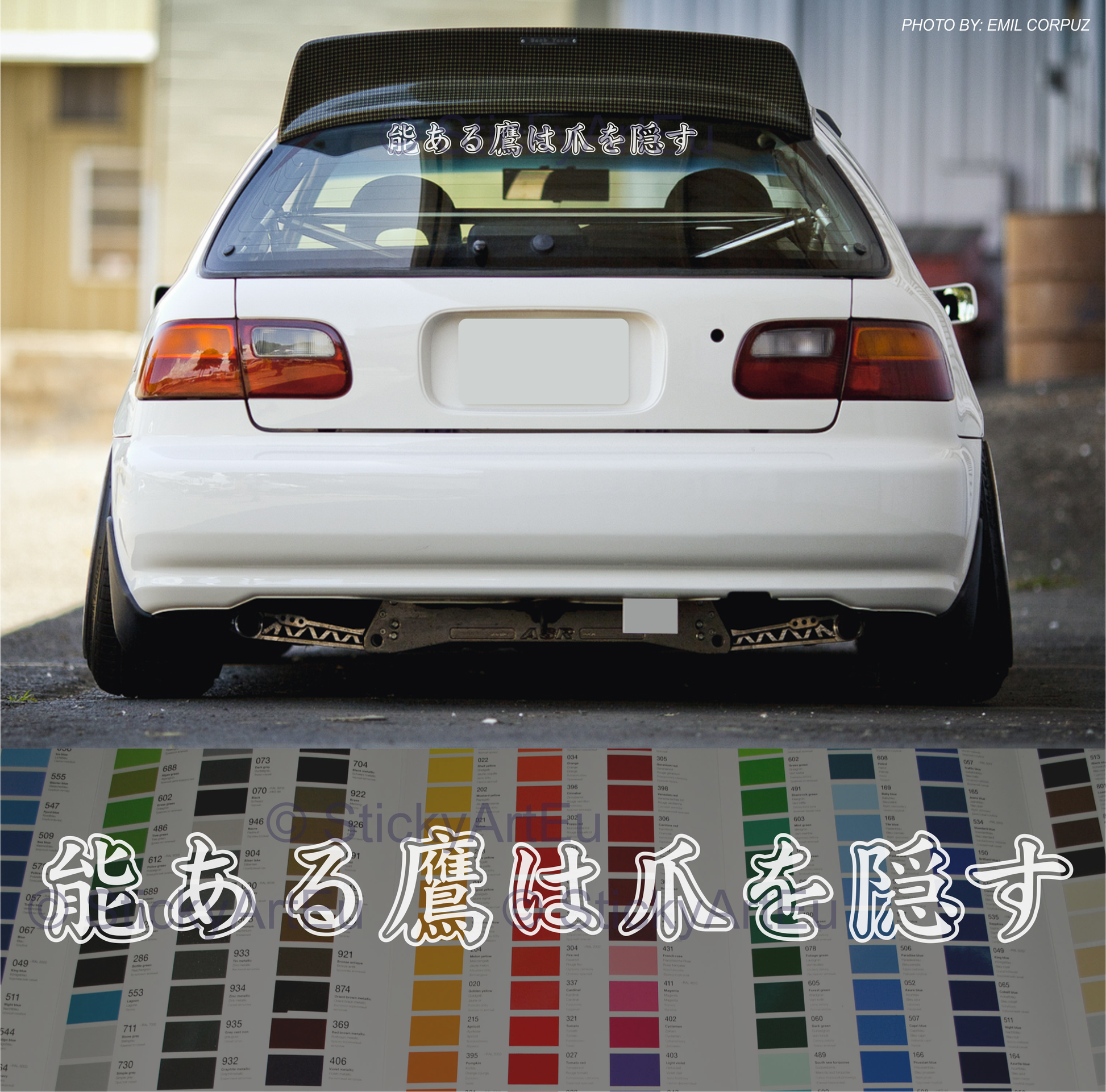 Autocollant JDM « Restez humble » uniquement en japonais