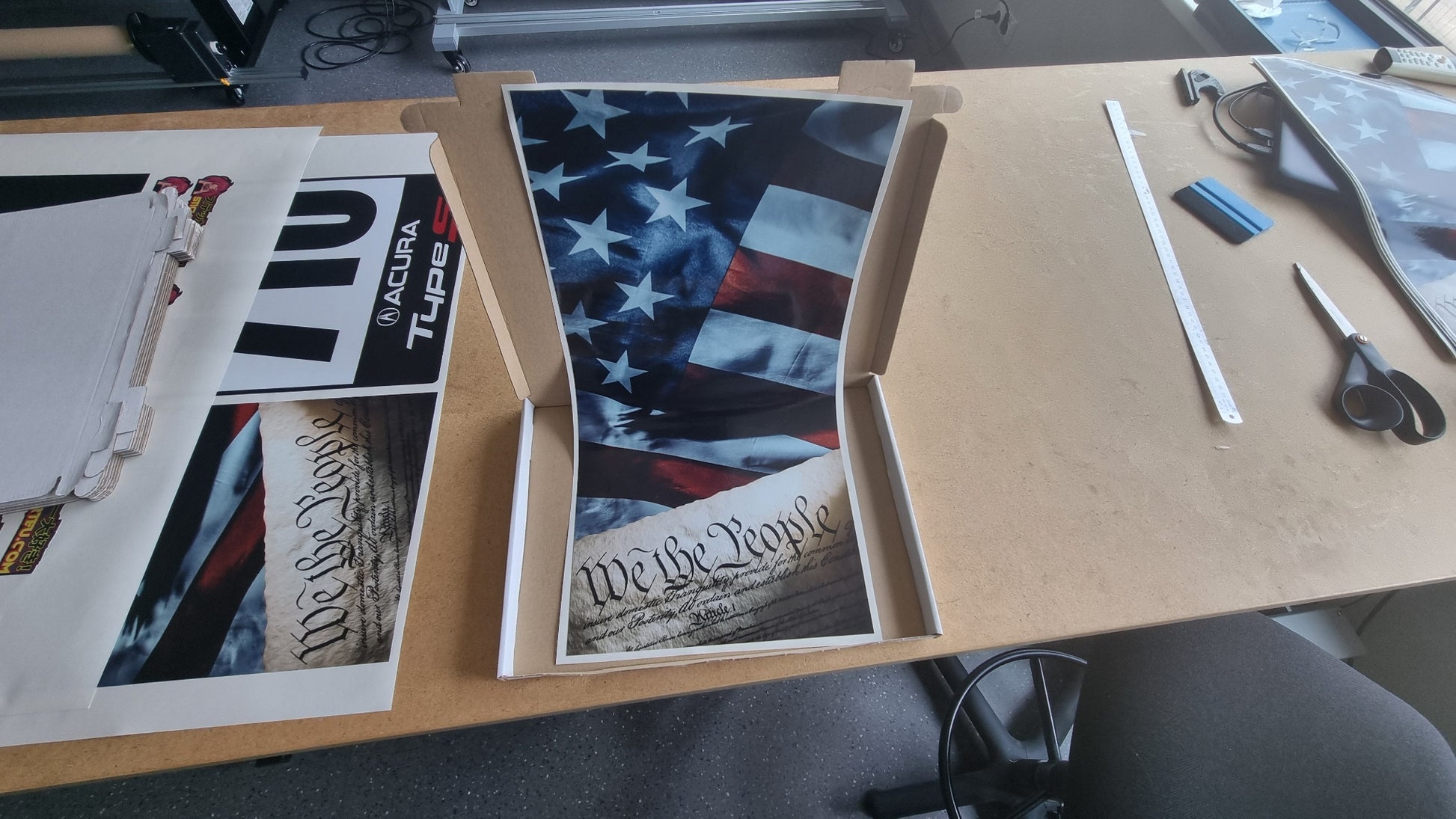 7. Once one side is laid down, remove the center-tape-line, then remove the other half of the vinyl backing the same way as before, and repeat the process for the other side.